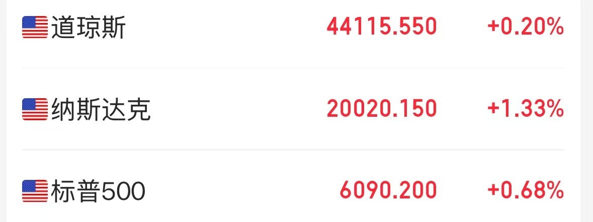 北京时间1月22日晚间,美股三大指数集体高开,纳指盘中突破20000点关口,截至23:33分,道指涨0.2%,纳指涨1.33%,标普500指数涨0.68%。